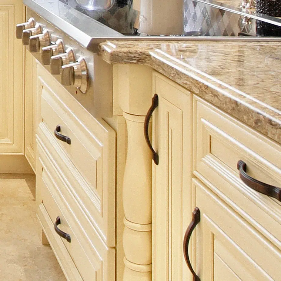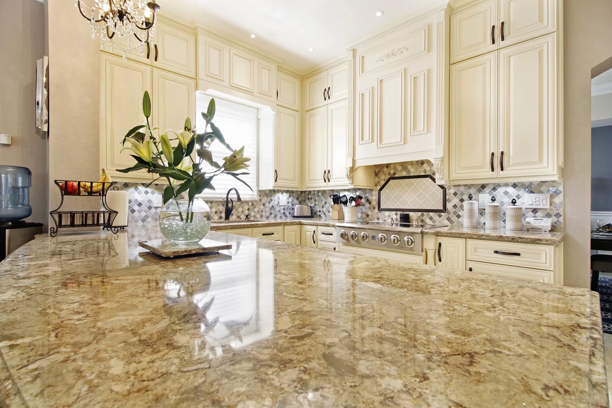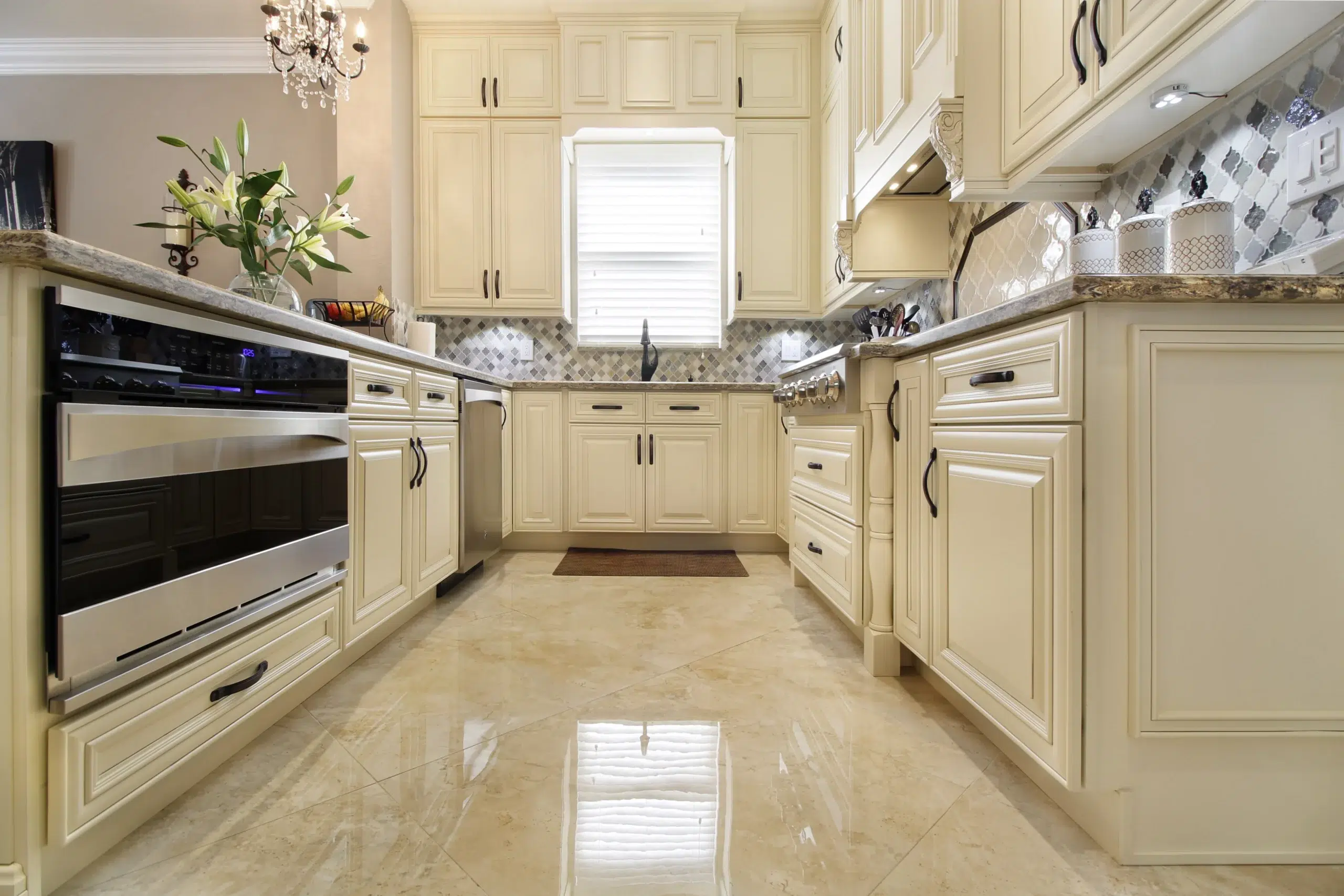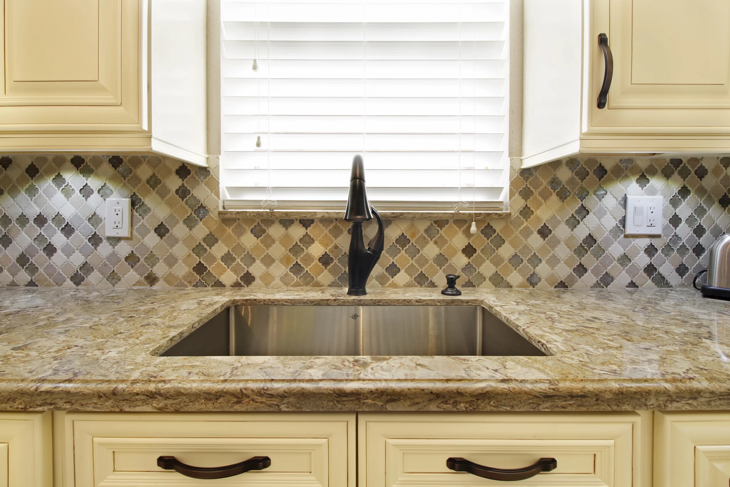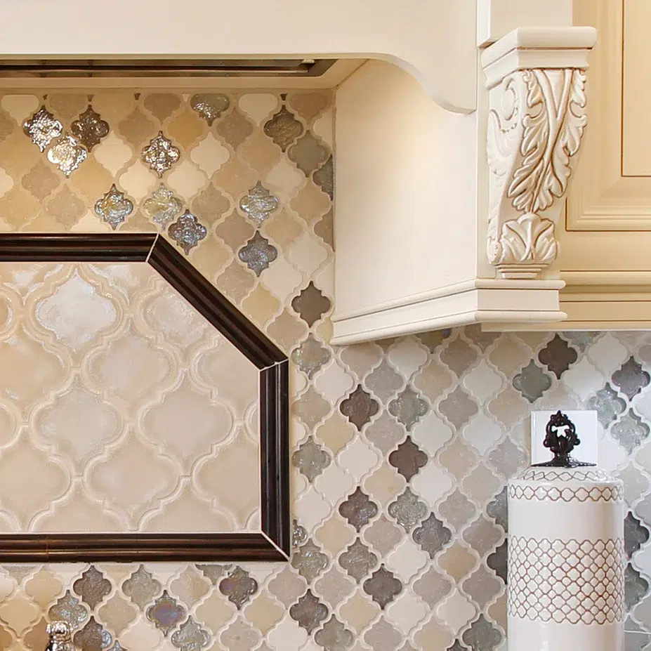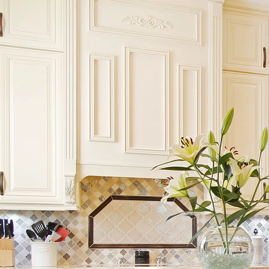 Step into a world of timeless elegance with this grand, traditional kitchen. Richly detailed, glazed cream cabinetry is adorned with ornate moldings, carved corbels, and oil-rubbed bronze hardware. Warm, intricate granite countertops flow across the space, complemented by a decorative arabesque tile backsplash. From the custom-paneled range hood to the crystal chandeliers, every element is crafted to create an atmosphere of classic luxury and inviting warmth.